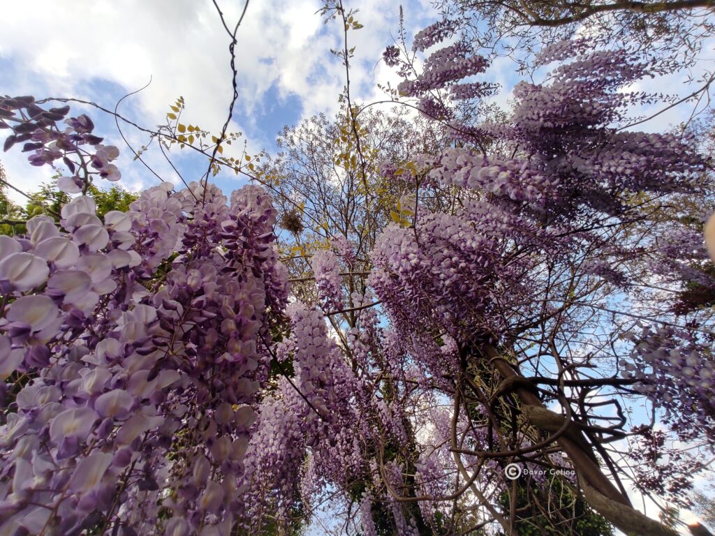 Ispod kiše cvjetova Wisterije (glicinije), svijet se pretvara u bajkovitu scenu gdje se priroda i poezija susreću. Nježni, ljubičasti grozdovi cvjetova vise s pergole i grana, stvarajući zavjesu kroz koju sunčeve zrake plešu, a lagani povjetarac nosi njihov slatkasti miris.