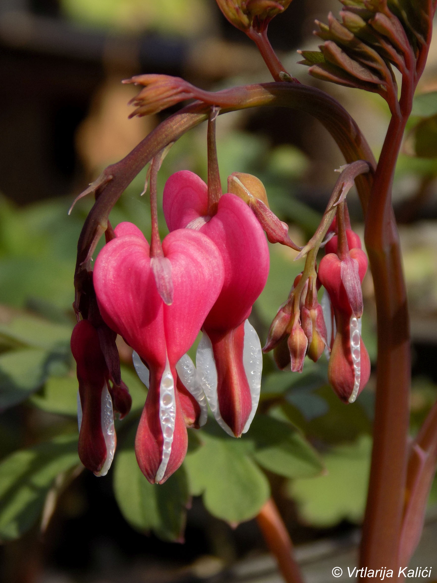 Otporna zeljasta trajnica sa rizomatskim korijenom i lisnatim stabljikama. Cvjetovi su srcolikog oblika i pojavljuju se u skupinama na visokim izbojima. Nakon cvatnje listovi počinju žutjeti i biljka se povlači u tlo.