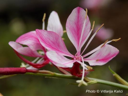 Gaura “Kalici’s Prairie star” nova je biljka u nasoj ponudi. Busenasta trajnica s uskim, lancetastim listovima zelene boje. Listovi ponekad poprime crvenkasti ton. Naša nova sorta koja cvate na dugim i golim granama s cvjetovima koji mogu imati nijanse od čisto bijele do čiste magenta boje sa svim mogući kombinacijama. Svaki je cvijet kombinacija za sebe. Na svakoj grani moguća je drugačija kombinacija boja. Stvorena u vrtlariji predstavlja jedinstvenu varijaciju u ovoj skupini biljaka.